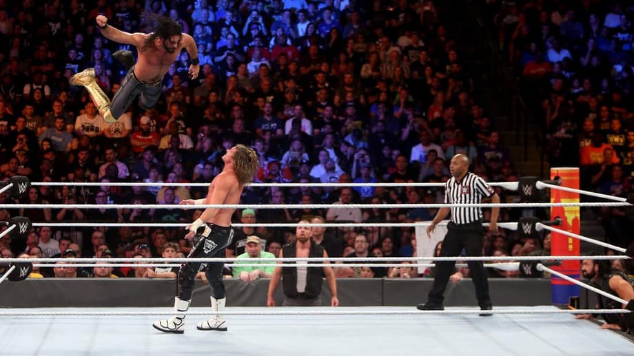 During last night's SummerSlam, Seth Rollins came to the ring wearing ring gear which was clearly based on Avengers: Infinity War villain Thanos. He didn't turn Dolph Ziggler to dust but he did take his title!